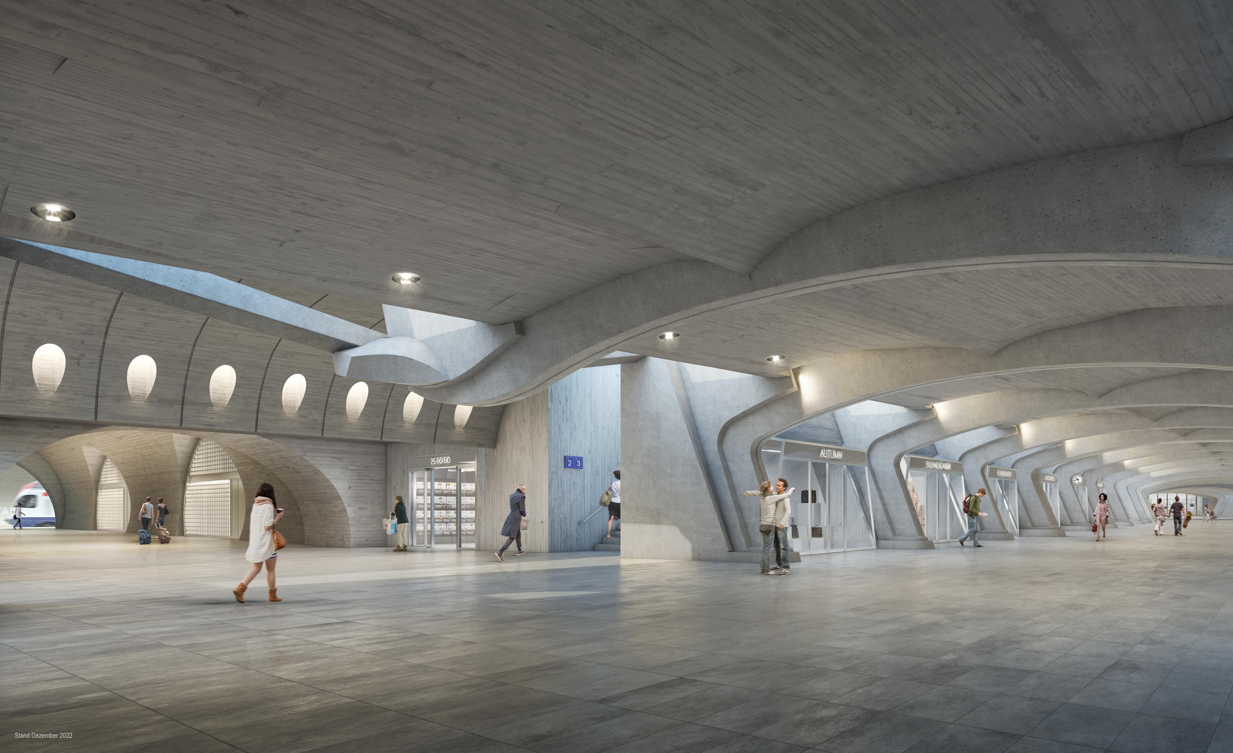 Zürich Stadelhofen station is an important landmark and transfer station for the city of Zurich. The number of passengers using Stadelhofen station is predicted to increase from around 80,000 today to 130,000 passengers a day by 2050. The Confederation’s plans for the 2030/2035 expansion step involve increasing capacity by building a fourth platform at low level. This involves expanding passenger access and infrastructure as necessary and building the connections required to existing rail lines below ground. The plan also includes new spaces for commerce and renovation of the existing facilities.