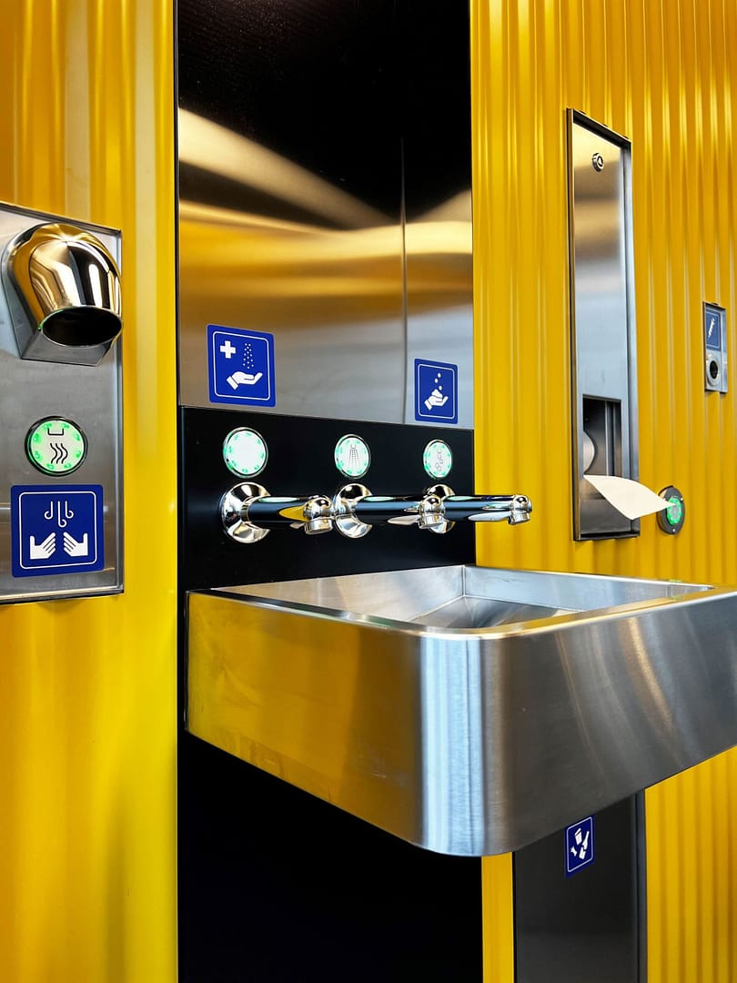 Les toilettes, neuves ou rénovées, sont payantes et donc mieux protégées contre le vandalisme, garantissant ainsi une plus grande disponibilité et sécurité. Le paiement se fait sans contact, à la demande générale de la clientèle, et des cartes d’accès peuvent être achetées aux distributeurs Selecta si besoin. De plus, les nouvelles toilettes sont équipées de matériaux plus chauds et de surfaces plus faciles à entretenir. Elles se distinguent ainsi délibérément de l’apparence de «toilettes de gare ».