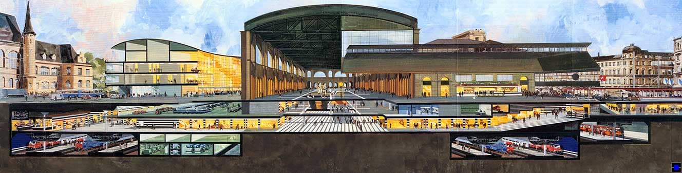Erweiterung des Bahnbetriebs und Entstehung des ShopVille-Zürich Hauptbahnhofs.