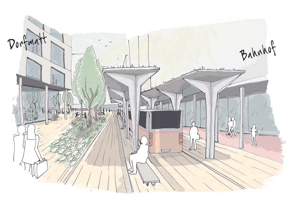 Mit dem neuen Bahnhof wird das Umsteigen zwischen den verschiedenen Verkehrsmitteln für alle Reisenden barrierefrei, bequemer, sicherer und effizienter. Der verbesserte Bahnzugang fördert den Modalsplit zugunsten des öffentlichen Verkehrs und ist Teil der Arealentwicklung.