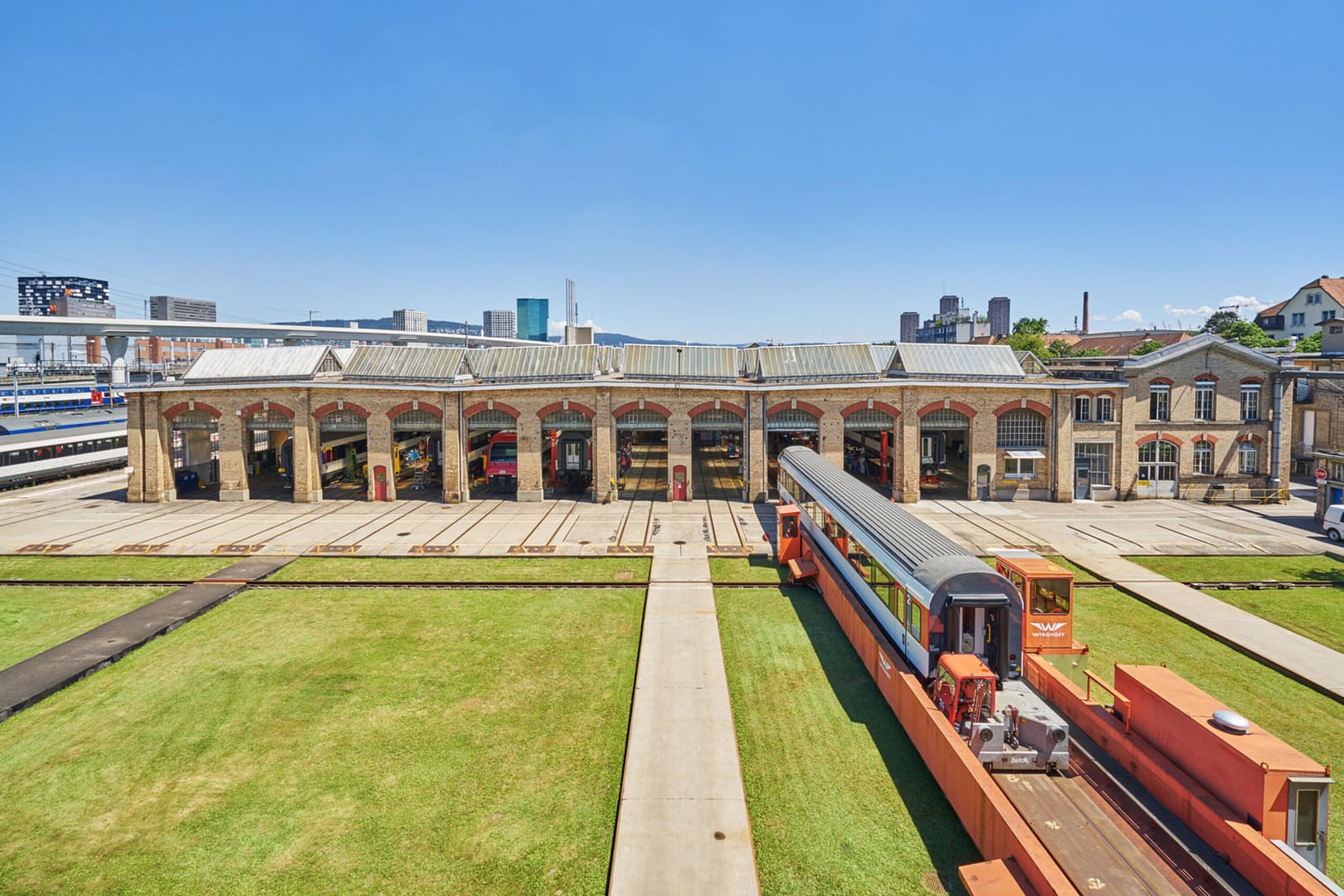 Eine Schlüsselposition nimmt das denkmalgeschützte Gebäude Q (Baujahr 1911) ein, dessen Gesamtsanierung zurzeit läuft. Es besteht aus einer eindrücklichen Halle und einem zweigeschossigen Kopfbau. Das rund 116 Meter lange, 85 Meter tiefe und 8 Meter hohe Gebäude diente als Wagenwerkstatt.
