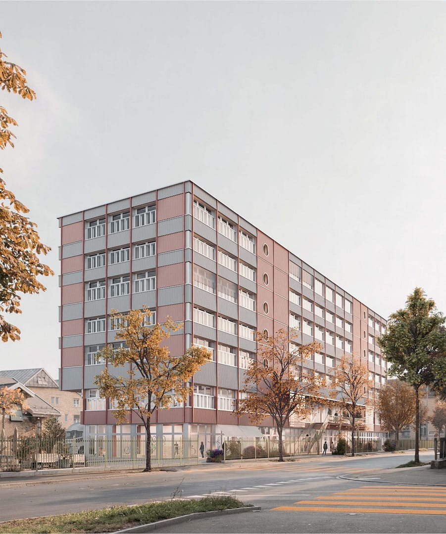 Entlang der Hohlstrasse, am heutigen Standort der Stützliwösch, wird mit dem Gebäude X der erste Neubau auf dem Gelände entstehen. Damit setzt das Gebäude X den Grundstein für die innere Verdichtung des Areals und übernimmt eine Pionierrolle in puncto nachhaltiges Bauen und hohe Baukultur.