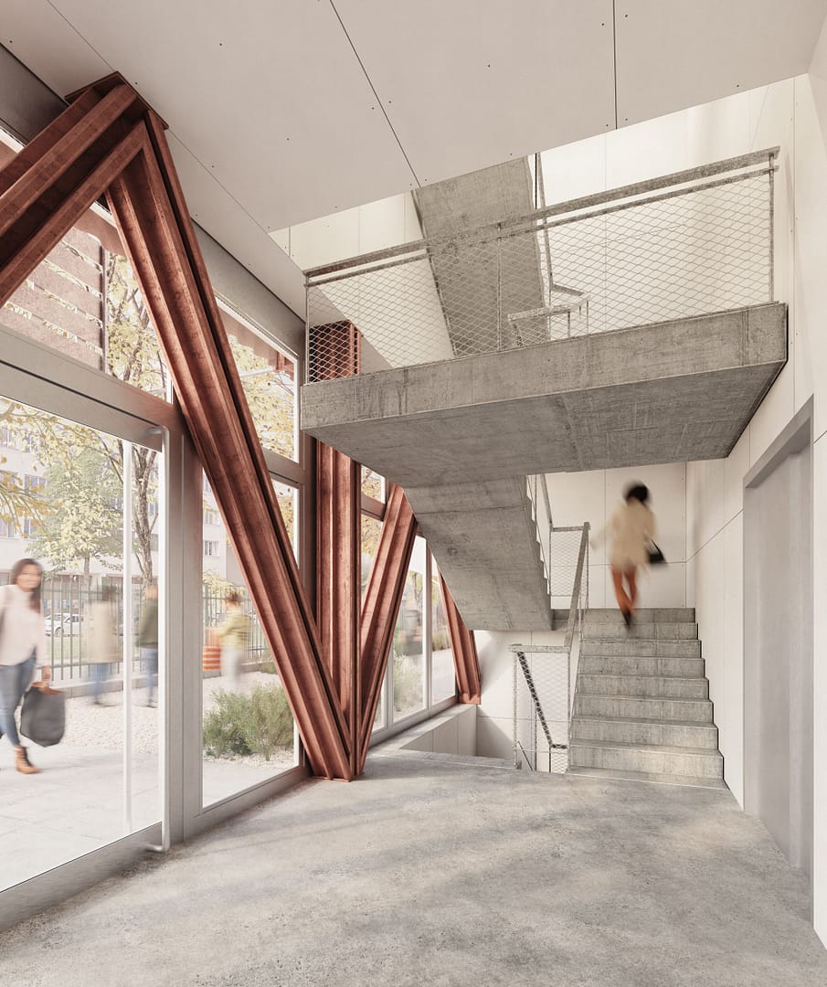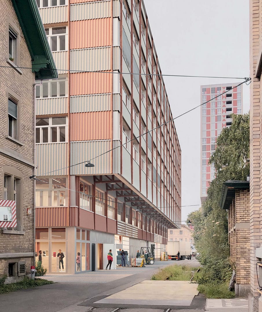 Der Neubau, der voraussichtlich ab 2026 auf dem 1100 m2 grossen Baufeld entsteht, ist als siebengeschossiger Gewerbebau konzipiert. Die teilweise zweigeschossigen Flächen ermöglichen einen Mix aus klassischem und innovativem Gewerbe und sind für kleine bis mittelgrosse Betriebe vorgesehen. Im ersten Obergeschoss entsteht ein «Stadtgeschoss», das mit Dienstleistungs- oder Kulturangeboten den Austausch und Kontakt mit dem Quartier und der Stadt fördert.