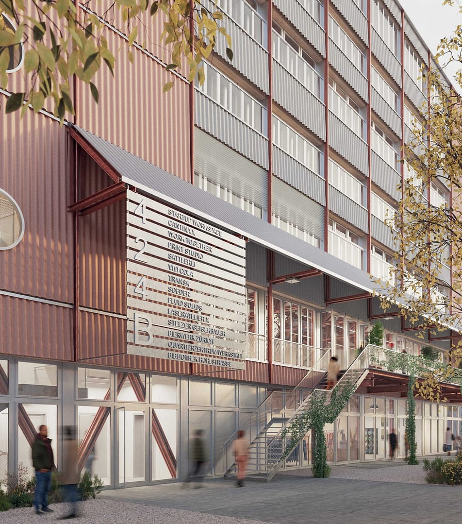 An der Hohlstrasse, dem Areal vorgelagert, liegt eines der wenigen freien Baufelder. Hier soll das Gebäude X als erster Neubau des Transformationsprozesses zu stehen kommen. Die SBB setzt auf hohe Baukultur und die Werkstadt Zürich auf Kreislaufwirtschaft. Deshalb hat die SBB mit einem Gesamtleistungswettbewerb ein Projekt gesucht, das diesem Anspruch gerecht wird, sich städtebaulich in den Bestand und das Quartier einfügt und den künftigen Nutzer:innen optimale Bedingungen bietet. Eine Jury aus Fachexpert:innen, Vertreter:innen der Bauherrschaft und der Stadt hat nun das Siegerprojekt gekürt.